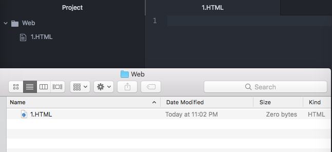 웹페이지를 만들기위해 확장자가 .HTML 인 1.HTML 파일을 만들어준다.(파일명이 1)
