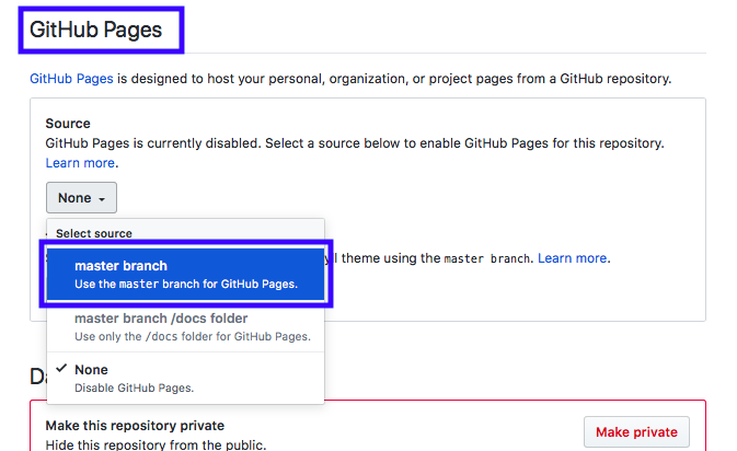 Settings - GitHub Pages - Source - select master branch - check address