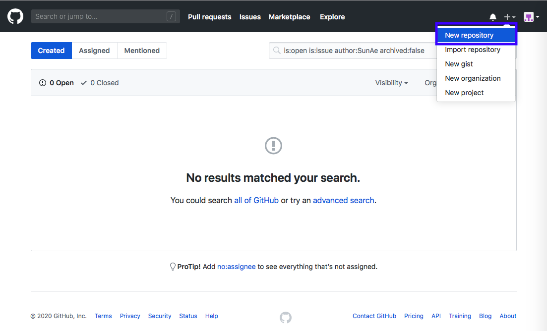 github - 회원가입 - 로그인 - New repository - 저장소 생성