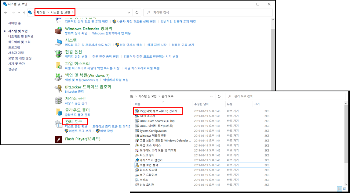 5. 제어판 > 시스템 및 보안 > 관리 도구로 들어갑니다.